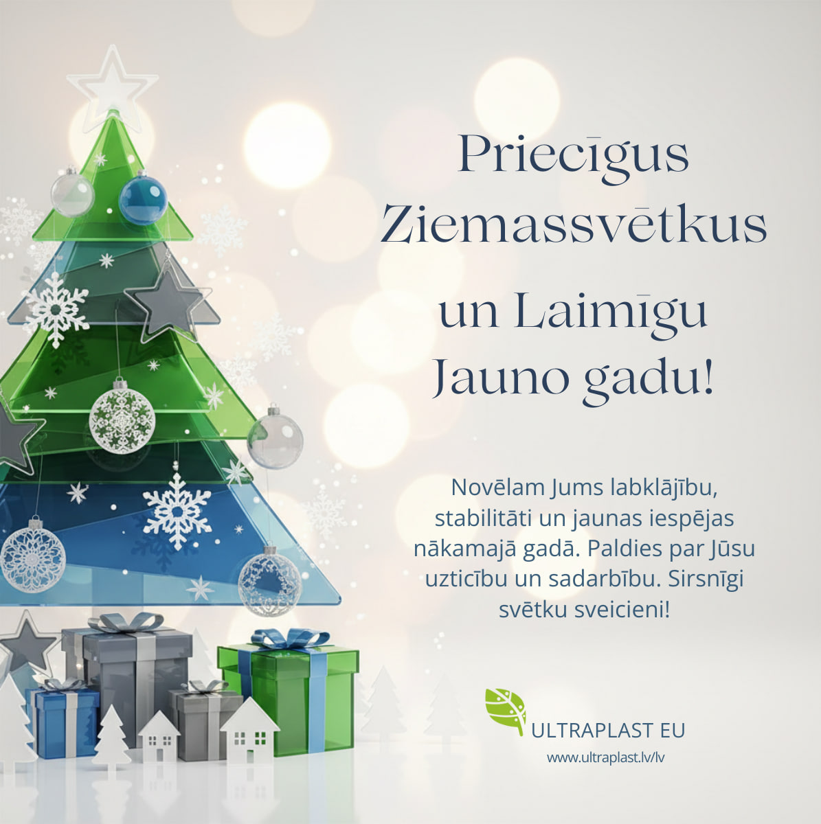 Vēlamies Jūs informēt, ka SIA Ultraplast EU būs Ziemassvētku brīvdienās no 2025. gada 20. decembra. Šajā laikā mūsu ražošana un birojs būs slēgti, un interneta veikalā veiktie pasūtījumi netiks apstrādāti vai nosūtīti.